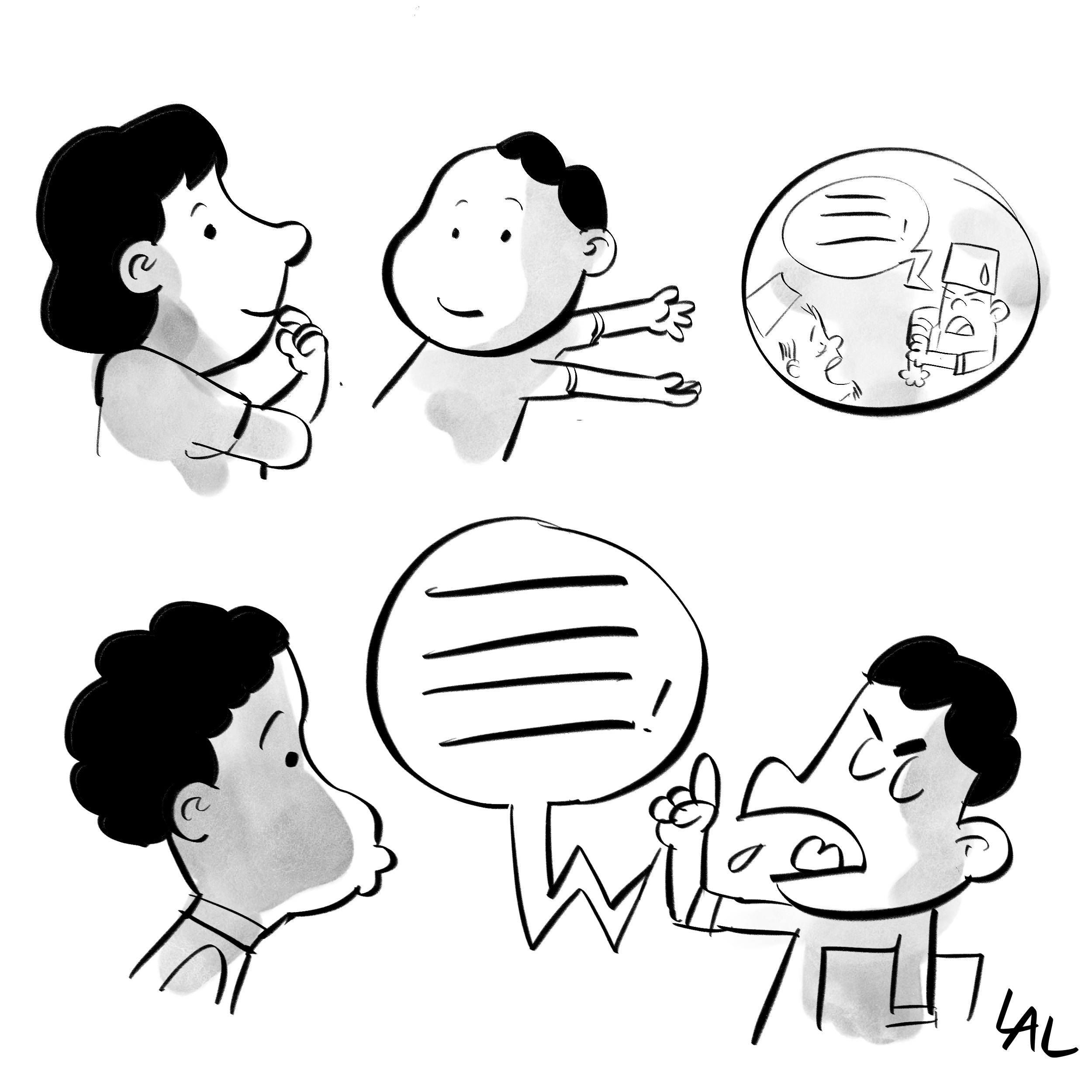 “Pak Muin, boleh sabar tak?,” bentak Razi. (Dialog)